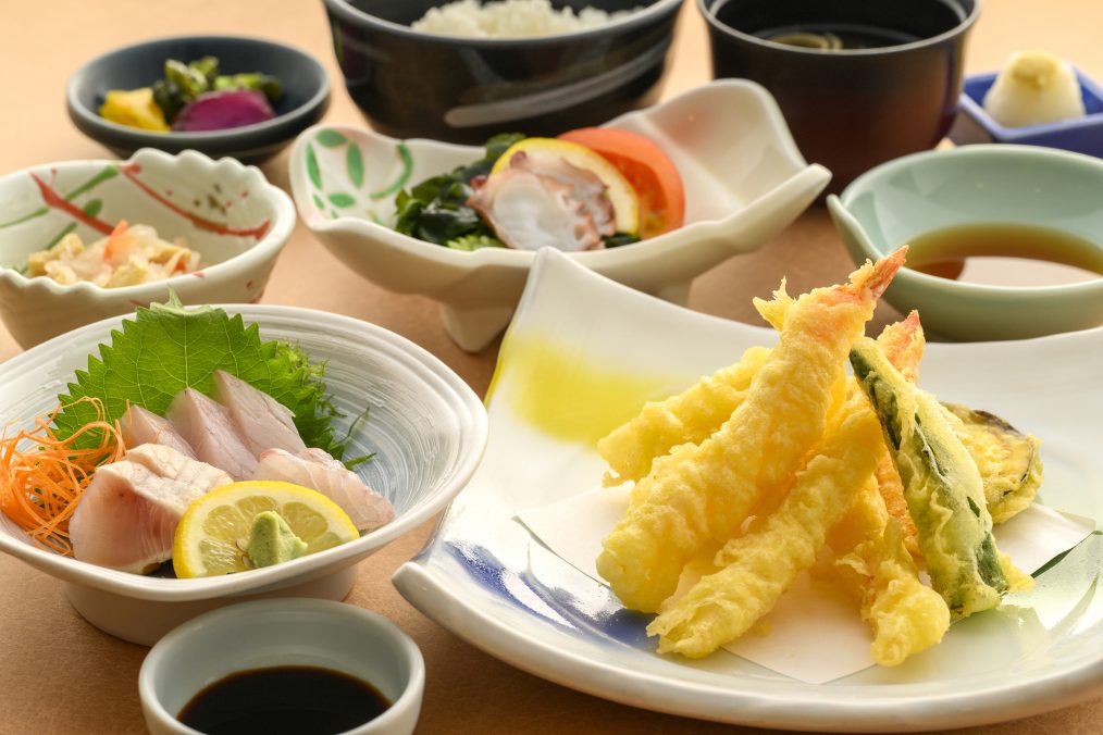 *玄界灘を望む、休暇村志賀島天刺定食の昼食と露天風呂で心地よい潮風を感じながら入浴をお楽しみ下さい。